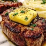 Once cooked, remove the steak from the air fryer and immediately place the butter on top. Let the steak rest for 5 minutes before slicing; this rest period allows the juices to redistribute, ensuring every bite is juicy and tender with a luscious buttery finish.