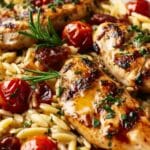 This Delicious Mediterranean Chicken with Orzo is a quick and flavorful dish combining tender, seasoned chicken breasts with perfectly cooked orzo pasta infused with chicken broth and fresh lemon juice. Ideal for a weeknight dinner, it brings vibrant Mediterranean flavors to your table in just 30 minutes.