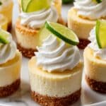 - Serve: Top each chilled mini cheesecake with a dollop of the tequila lime whipped cream. Garnish with lime slices, extra lime zest, and/or coarse sugar if desired. Serve immediately for the best flavor and texture.