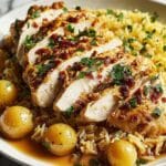 Drizzle the chicken broth over everything. This liquid prevents the chicken from drying out and helps to create the luscious sauce that you’ll want to savor with every bite.