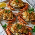 For a whimsical touch, serve the stuffed crab on a bed of mixed greens or atop individual lettuce cups for a fresh, bite-sized presentation. You can also plate this dish with a drizzle of remoulade sauce or your favorite spicy aioli along the side, adding layers of flavor and an elegant flair that will impress any crowd.