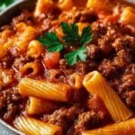 This Old-Fashioned Goulash is a comforting, hearty one-pot meal featuring ground beef, tender elbow macaroni, and a rich tomato-based sauce seasoned with Italian herbs and Worcestershire sauce. Ready in under 40 minutes, it’s a perfect weeknight dinner that can be customized with optional bell peppers, cheese topping, and fresh parsley garnish.
