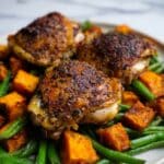 This One Pan Maple Mustard Chicken with Roasted Sweet Potatoes and Green Beans Recipe is my go-to for an easy yet impressive meal that feels like a special occasion but comes together without fuss. The combination of sweet, savory, and herbaceous flavors will have you coming back for seconds—and maybe even thirds. I can’t wait for you to try it and see just how magical one pan dinners can be!