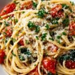 To make this One-Pot Vegetarian Spaghetti Recipe vegan, simply omit the Parmesan cheese or replace it with a vegan cheese alternative or nutritional yeast. The flavors remain deliciously vibrant without dairy.