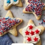 Celebrate your favorite patriotic holidays with these delightful Patriotic Sugar Cookies. Soft, buttery cookies cut into festive star and flag shapes, topped with creamy homemade cream cheese frosting and colorful sprinkles. Perfect for family gatherings, parties, or simply showing off your red, white, and blue spirit!
