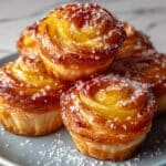 Delight in these Peach Pie Cruffins, a perfect blend of flaky puff pastry and sweet, spiced peach filling. Ideal for breakfast or dessert, these cruffins are easy to prepare and bake to golden perfection, offering a charming twist on traditional peach pie with a delightful spiral shape and cinnamon sugar topping.