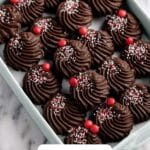 These Piped Chocolate Butter Cookies are delightful, buttery treats with a rich cocoa flavor, perfect for any occasion. Soft, piped dough creates elegant shapes that bake into crisp-edged, tender cookies. Finished with optional melted chocolate drizzle and colorful sprinkles or chopped nuts, they make a beautiful and delicious snack or dessert.