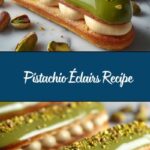 Delight in these elegant Pistachio Éclairs featuring light, airy choux pastry filled with rich, creamy pistachio-flavored pastry cream and topped with a smooth glaze and crunchy chopped pistachios. A classic French dessert elevated with nutty pistachio goodness, perfect for special occasions or an indulgent treat.