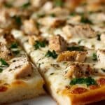 This Roasted Garlic White Chicken Pizza combines a luscious homemade white sauce with tender roasted garlic, juicy cooked chicken breast, and melty mozzarella cheese on a crispy pizza crust. With a flavorful Parmesan-infused béchamel and Italian seasoning, this pizza makes for an irresistible, comforting meal perfect for pizza night.