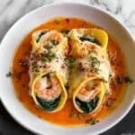 How to Serve Shrimp & Spinach Stuffed Pasta Rolls with Roasted Red Pepper Cream Sauce Recipe