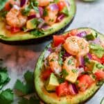 If you’re feeling festive or entertaining, try serving the Shrimp Stuffed Avocados Recipe in halved mini bell peppers or use hollowed-out cherry tomatoes as bite-sized appetizers. You can also arrange the stuffed avocados atop a bed of mixed greens or radicchio for a colorful, crowd-pleasing presentation.