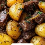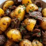 Slow Cooker Garlic Butter Beef Bites & Potatoes is a hearty and comforting dish featuring tender beef stew meat and baby potatoes slow-cooked with garlic-infused melted butter, herbs, and beef broth. This recipe delivers rich, savory flavors with minimal hands-on time, making it perfect for an easy family meal.