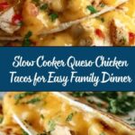 These Slow Cooker Queso Chicken Tacos are a creamy, cheesy twist on classic tacos, featuring tender slow-cooked chicken mixed with a rich queso sauce. Perfect for a cozy weeknight meal, the chicken is slow-cooked with taco seasoning and tomatoes, then topped with a smooth blend of cream cheese, cheddar, and Monterey Jack cheeses. Serve in your favorite tortillas or crunchy shells with fresh toppings for a deliciously comforting taco experience.