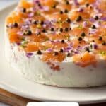Gently fold in the chopped smoked salmon, capers, fresh dill, and chives if you’re using them. Season the mixture with salt and pepper according to your taste. Be delicate to keep the smoked salmon pieces intact and evenly distributed throughout the dip.