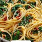 Transfer any leftover Spaghetti & Spinach with Sun-Dried Tomato Cream Sauce Recipe into an airtight container and place it in the refrigerator. It will stay fresh for up to 3 days and retain most of its creamy texture and vibrant flavors.