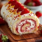 This delightful Strawberry Birthday Cake Roll is a light and fluffy sponge cake filled with whipped cream and fresh strawberries. Perfect for celebrations, this rolled cake combines a soft vanilla-flavored sponge with the sweetness of strawberries and cream, finished with a dusting of powdered sugar. Easy to make and visually impressive, it’s a fantastic treat for any special occasion.