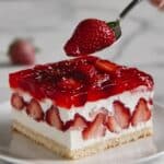 Before serving, add a few whole strawberries on top or a swirl of fresh whipped cream to amp up the visual appeal and flavor. Slice into squares and serve chilled for a dessert that’s as delightful in taste as it is in appearance.