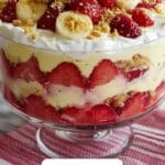 This Strawberry Crunch Banana Pudding is a delightful no-bake dessert featuring creamy instant banana pudding layered with fresh bananas and strawberries, topped with a crunchy mixture of vanilla wafers and freeze-dried strawberries. It’s easy to prepare, refreshingly fruity, and perfect for serving chilled on warm days or as a sweet treat after dinner.