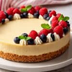This easy cheesecake recipe features a buttery graham cracker crust and a rich, creamy filling made with cream cheese, vanilla, and a blend of sour cream and heavy cream. Baked to perfection and cooled slowly in the oven, it results in a smooth, luscious dessert that’s perfect for any occasion. Serve chilled and garnish with fresh berries, whipped cream, or a drizzle of chocolate or caramel sauce.