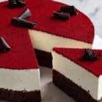 If you want to prepare the Valentine’s Day Red Velvet Cheesecake Recipe in advance, it freezes beautifully. Wrap it securely in plastic wrap and then aluminum foil or place in a freezer-safe container. Thaw overnight in the fridge before serving for the best texture and flavor.