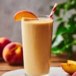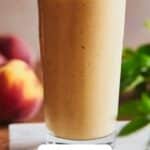 Store any leftover Vegan Peach Smoothie Recipe in a sealed container in the fridge for up to 24 hours. Since it may separate, just give it a good shake or stir before enjoying it again. Keeping it cold helps maintain the fresh flavor and texture.