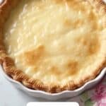 Water Pie has a mild, sweet, and creamy flavor with a custard-like texture that’s light and delicate. The vanilla and butter add warmth and richness, making it a comforting dessert without being too heavy.