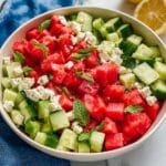 A refreshing and vibrant Watermelon Feta Salad that combines the sweetness of juicy watermelon with the creaminess of feta cheese, crisp cucumber, and aromatic fresh herbs. Tossed in a honey-lime dressing with a hint of olive oil and kosher salt, this salad is perfect for summer gatherings or a light, healthy snack.